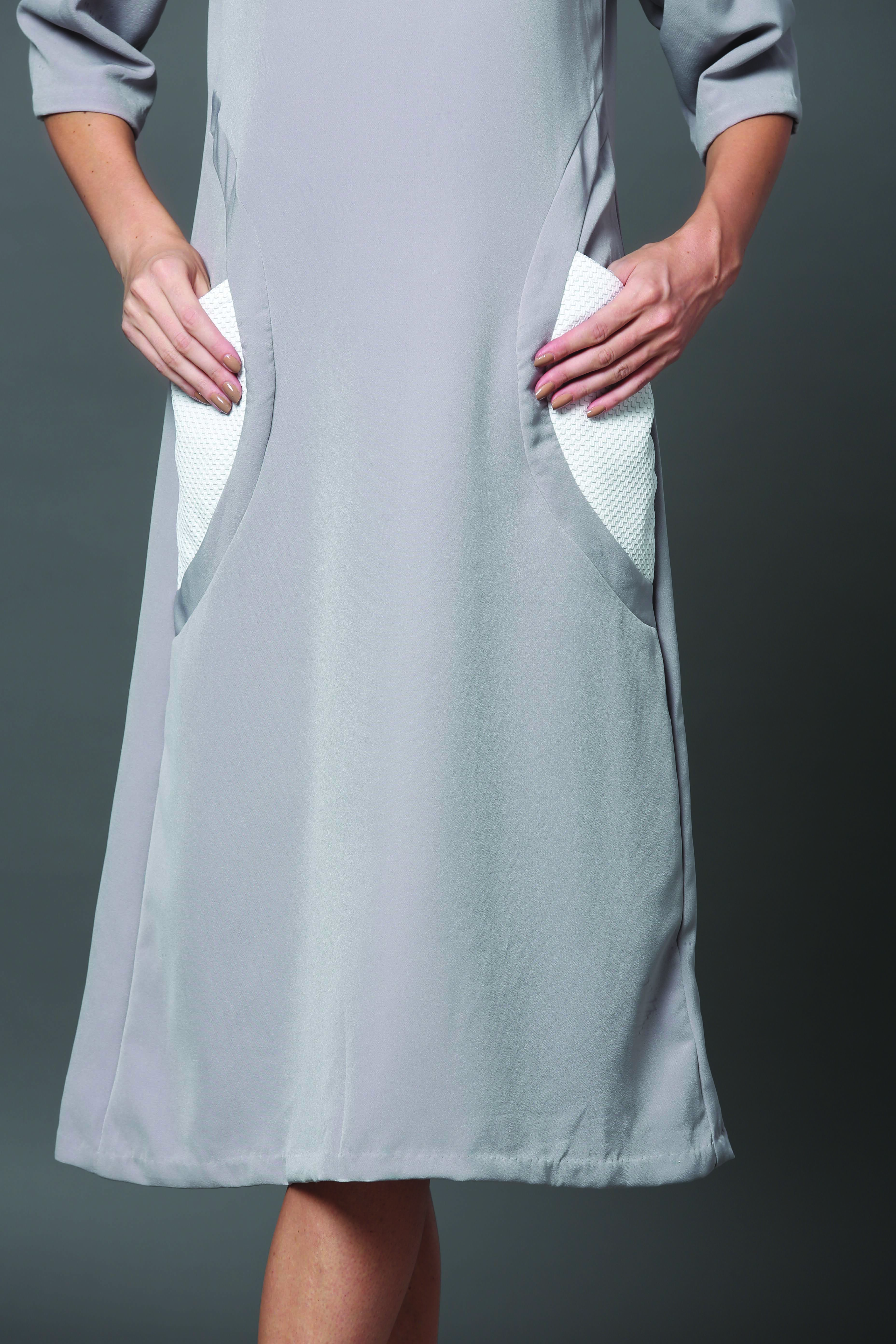 Each item goes beyond the visual language of fashion by involving the other senses. Namely that of touch. She incorporated Braille — the tactile system of reading and writing used by people who are blind — into the creation of articles of clothing to give greater autonomy to sightless people when clothing themselves. Hence the name “Dots” which refers to the tiny bumps or raised dots that help people to read without having to see. These dots would help the blind distinguish one item of clothing from the other and allow them to identify pockets, collars, panels and belt buckles. In addition to this, Parul incorporated textural elements to increase a sense of engagement and enjoyment in the wearer, through layered pockets, cording, embroidery, piping overlapping panels and other thoughtful touches.